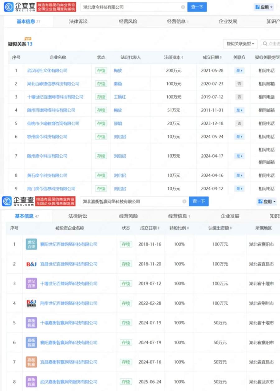 新识研究所查询发现,这两家公司都与“世纪百捷”在湖北的分公司有关联,老板也都是分公司的股东,可见缺乏了独家代理的保护,公司的服务能力和营收能力大受打击。
