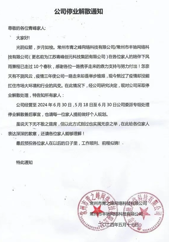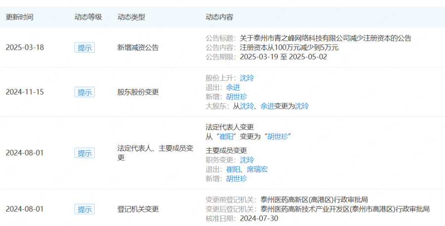不过,据新黄河大鱼财经报道,泰州青之峰公司员工称公司并未倒闭,只是7月底后就不再做百度推广业务,公司员工规模会保持在十余人左右。新识研究所发现,泰州青之峰各个社交媒体此后都未继续更新,公司的股东和法人也发生变更,2025年3月18日更是将公司注册资本从100万减到5万元。