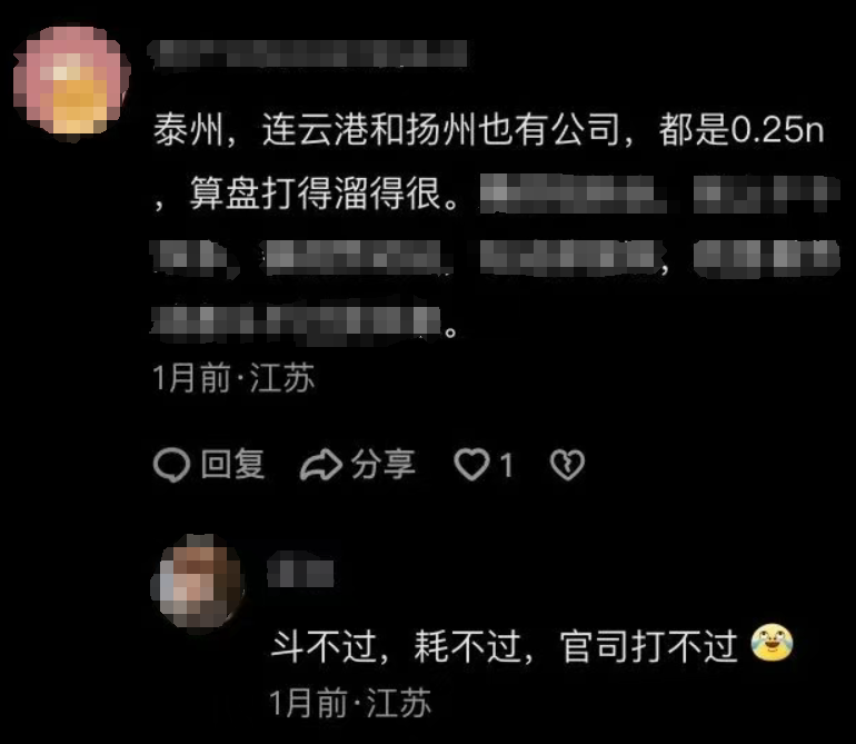 员工还发视频称,被公司约谈、威胁,“凡是没签字的员工,都被单方面解除了劳动合同,在停业解散赔偿的0.25N基础上再打六折,拿0.15N。”底下有人附和道:“泰州,连云港和扬州也有公司,都是0.25N”。
