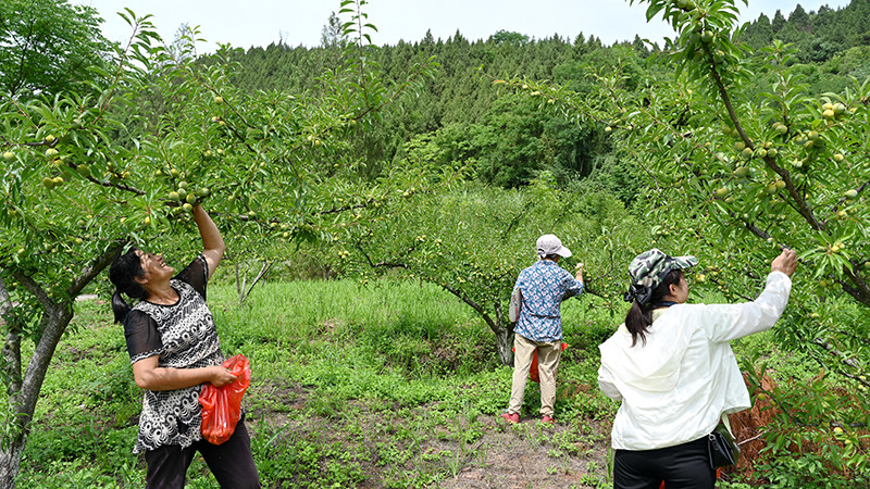 “李子好吃,我们在网上看到这里青脆脱骨李很好,所以今天就带着一家人过来采摘,既体验了采摘乐趣,又收获满满。”游客张思全说。