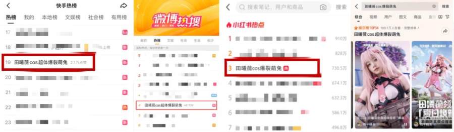 但她的意义不止于此,作为首位二次元形象导师,“爆裂萌兔”天然具备破圈能力,也在悄然拓宽这款射击游戏的边界。田曦薇的Cosplay,正是这条路径的延伸——游戏内容的情绪、氛围和讨论,已经开始流向游戏之外,更广阔的社交场域。