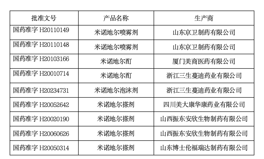 在2024年之前,获得国药准字认证的米诺地尔产品仅见于下表。