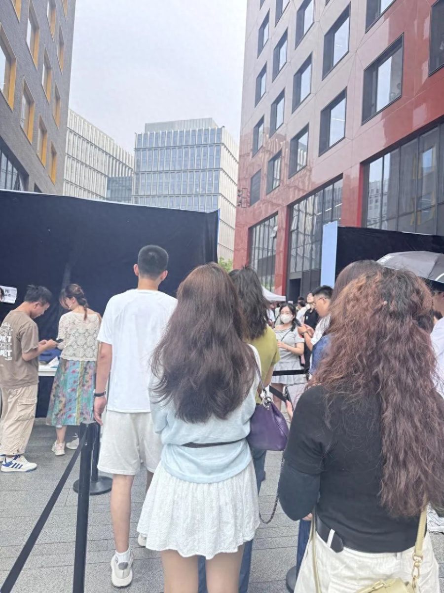 根据现场工作人员,此次活动共有1000多人报名,最终从中只选择出300名左右。入场也格外严苛,经过第一道园区门禁,还得过第二道人脸验证关卡。直播当天来现场围观的人,远比最终拿到入场券的人多,现场不断有“抱有侥幸心理想混进现场的”人被卡在层层门槛外。