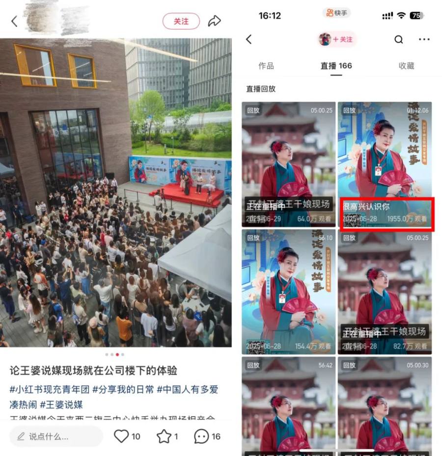 线上也是人气爆棚,不断有人涌进直播间。快手直播数据显示,海淀专场直播累计有1955.0万观看,远超王婆其他场次直播观看量。当天,不同角度的一线视频、直播切片,在各大社交平台热传,扎扎实实收获了又一波讨论。