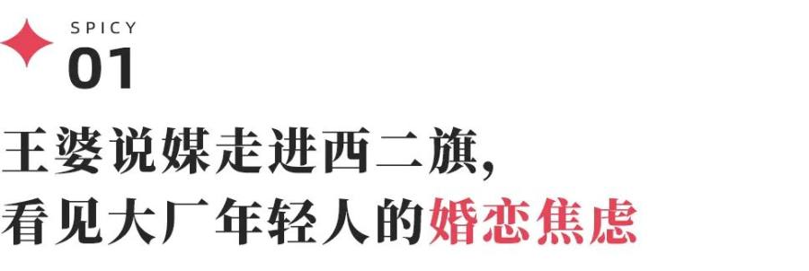 如果说以前的恋综更多是塑造偶像剧般冒着粉红泡泡的故事,提供一些恋爱代餐,开封王婆的走红则是从真实的婚恋困境里生长出来。纵然有不少上台嘉宾是冲着流量、博点关注,但王婆说媒能在全国走红,映射出的正是当下普遍的婚恋焦虑。