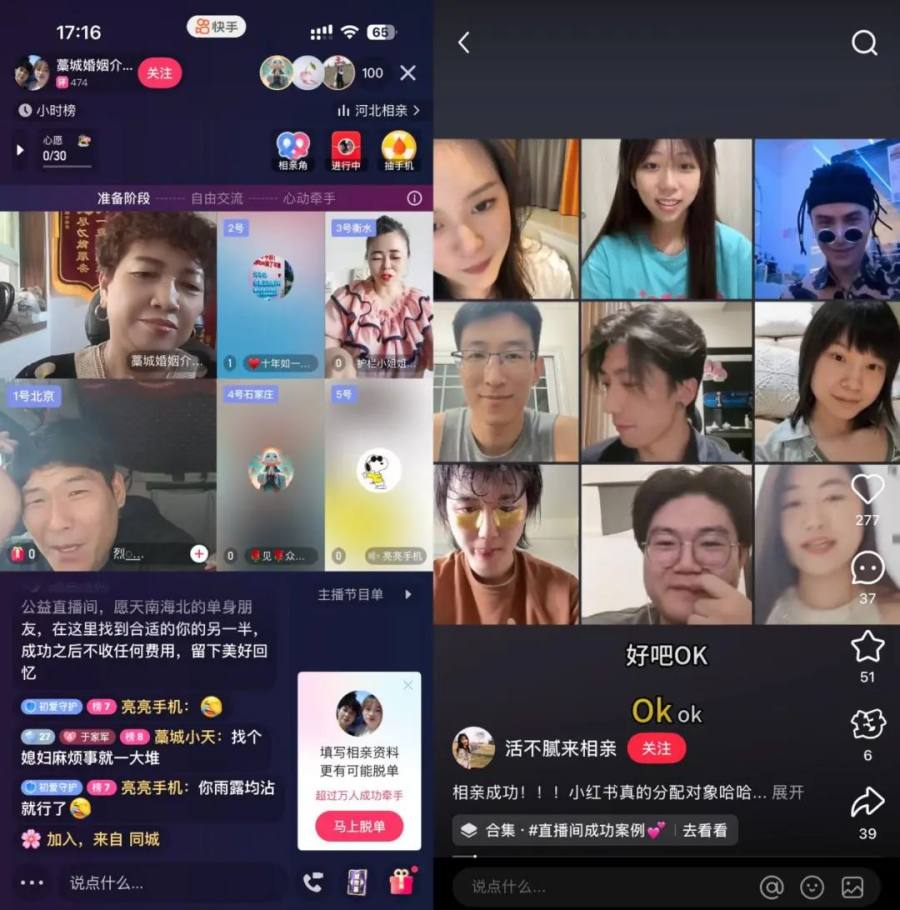 除了站在王婆说媒,不少相亲交友的直播间,也在快手等平台生根发芽。