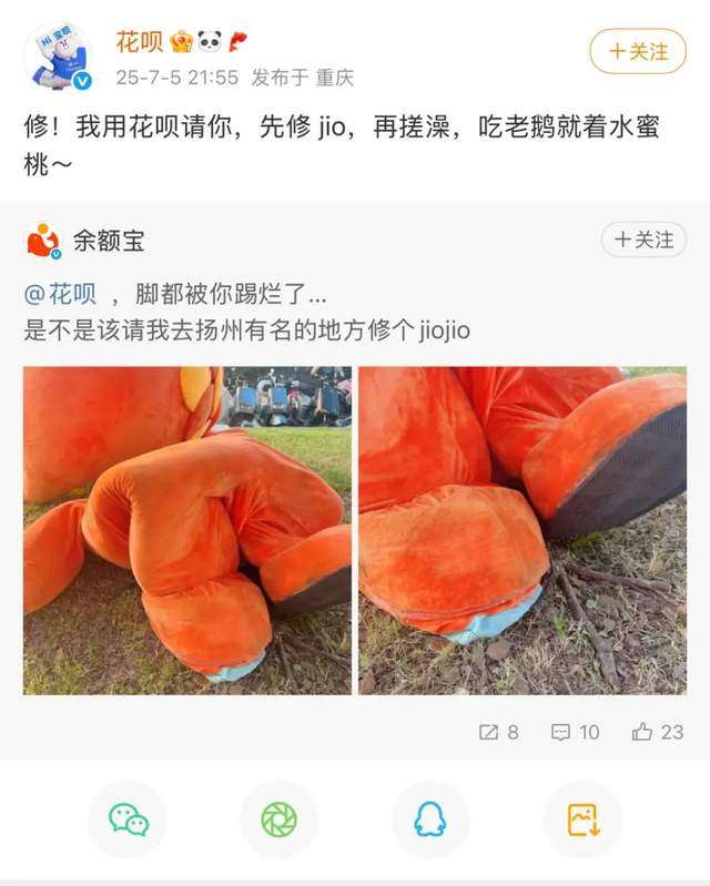 城市文旅纷纷拿着官方账号下场玩梗,苏超“散装”赞助商们也不甘示弱,铆足了劲儿给自家赞助球队加油助威。分别赞助了苏超四支球队的“阿里系”依旧内讧不停,特别是这周正面对战的扬州队和无锡队,两队的赞助商余额宝和花呗先打起来了……