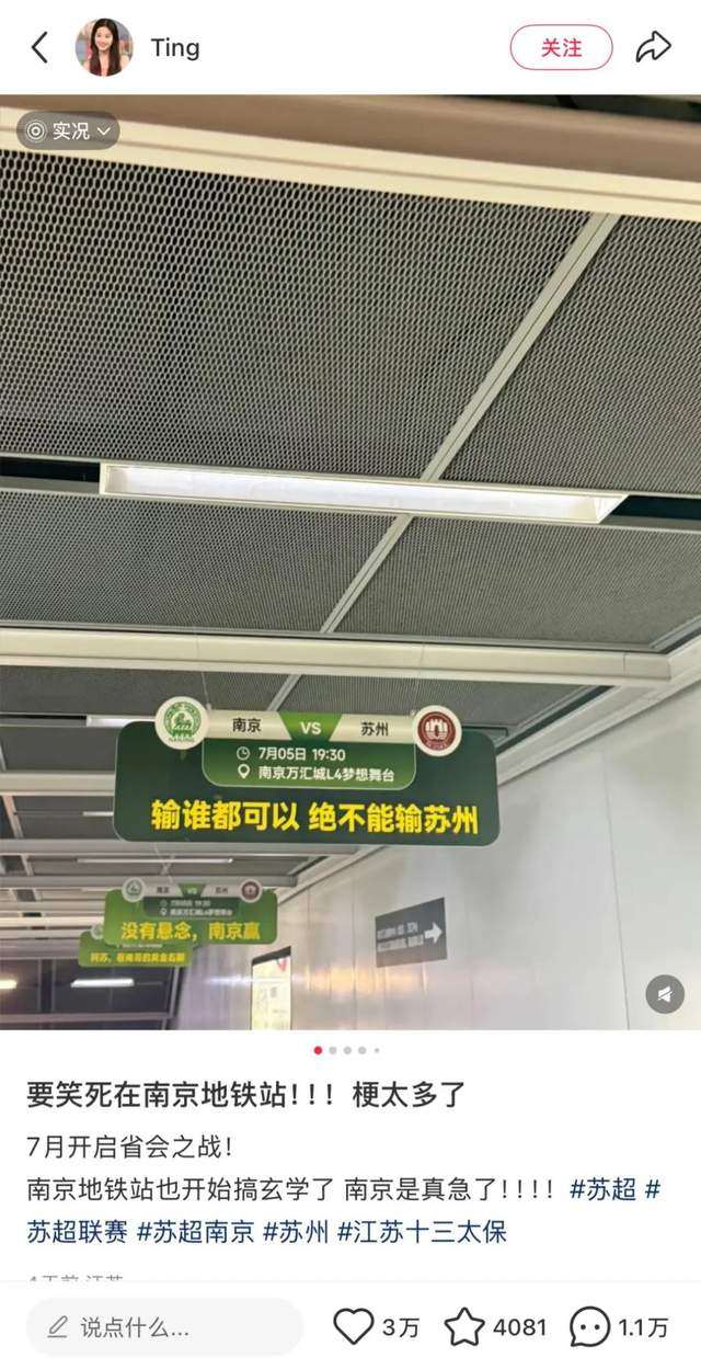 网友一看,乐了:“南京这下是真的急了”。再仔细一看,后面还有好些南京单方面放下的狠话,“赢不赢先放一边,南京有机场”“和气生财,踢苏州不算”……不管是基础设施还是玄学手段,南京是把自家老底都翻出来比了。