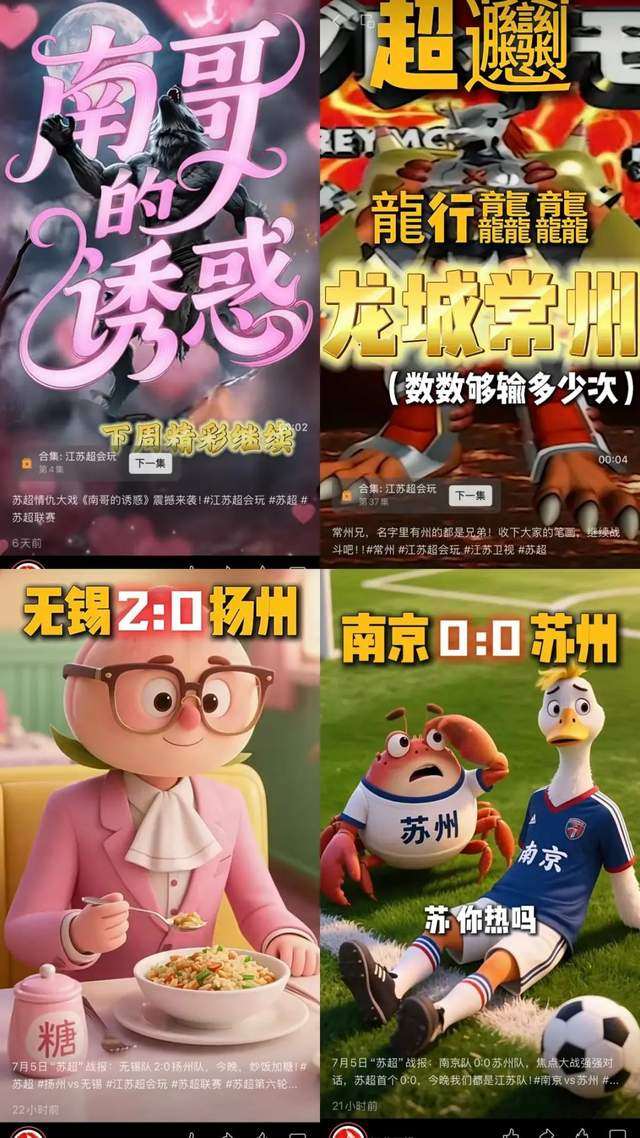 然而,关于南京和苏州这场大众期盼已久的对垒,比球赛更早火起来的,是如雨后春笋般冒出的新一波“苏超梗”。