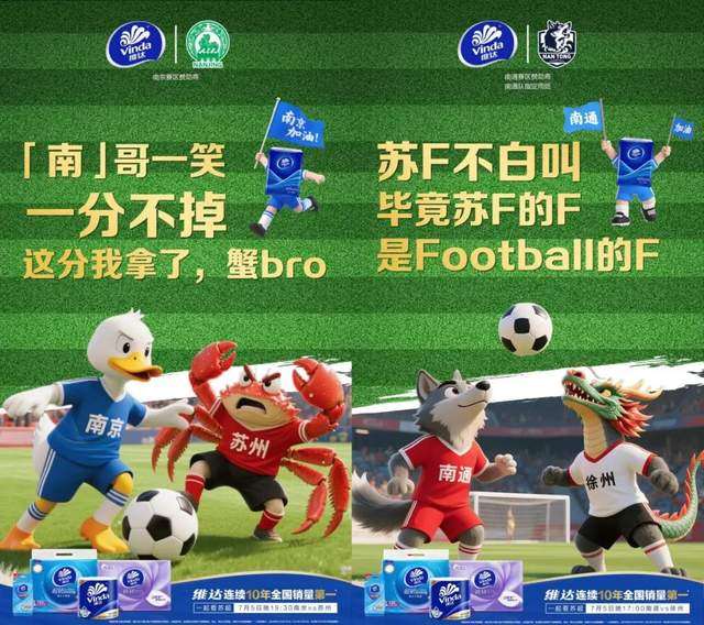 继城市文旅之间的“口水仗”、上周的“阿里内讧打到苏超”网络出圈,品牌似乎已经逐渐摸索到了蹭苏超热点的核心要素,那就是——放弃高冷人设,观众爱看的是“护短文学”。