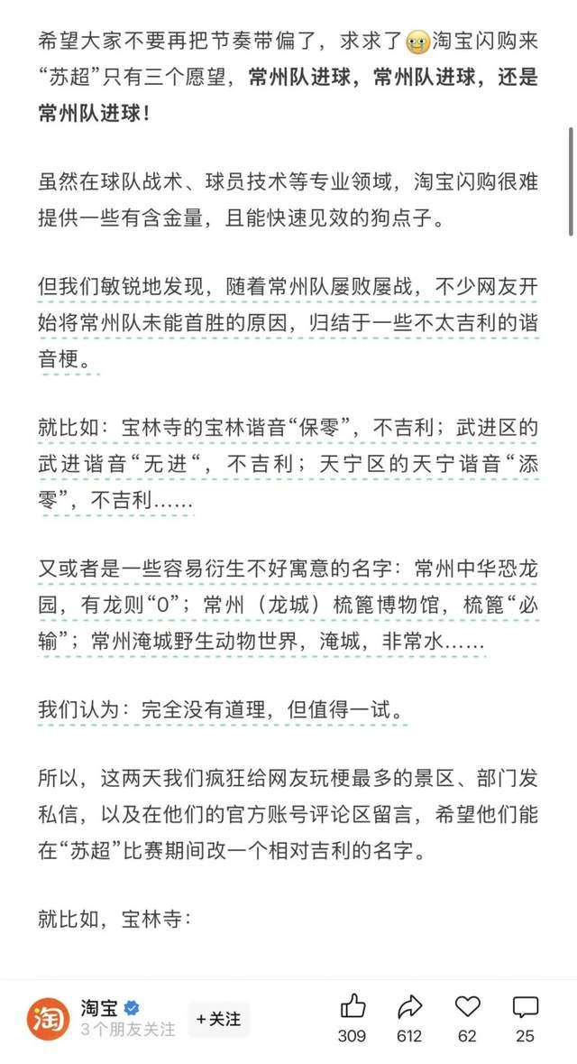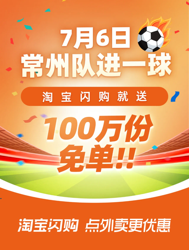 先是“下血本”发布百万免单活动:只要常州队进球,淘宝闪购就送100万份免单!