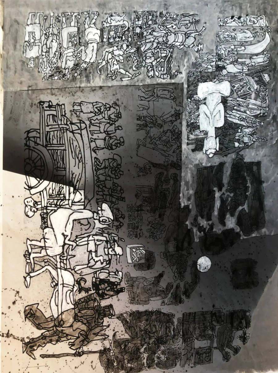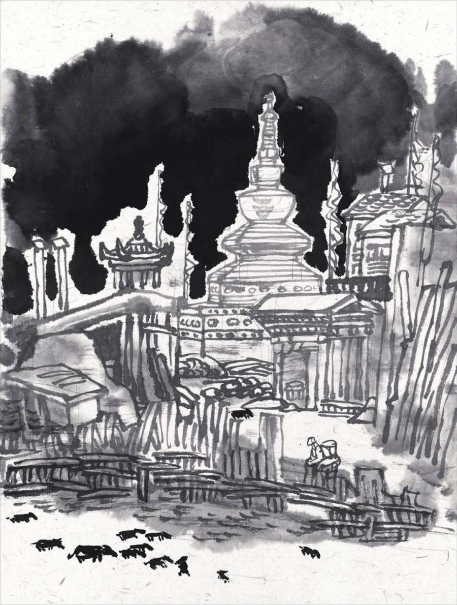 《塞上三日》纸本水墨42cm×63cm 2020年