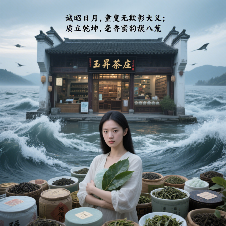 于是乎,瓯江潮涌,温邑启航。怀桑梓之精粹,辟商海之苍茫。初立门店,筚路何妨?秉福鼎之贞刚,守玉叶之淳良。诚昭日月,童叟无欺彰大义;质立乾坤,毫香蜜韵馥八荒。慧眼识珍,引普洱为昆友;雄心竞秀,揽雨林作瑶章。百川归海,万叶凝芳。商略九垓,云帆济浪启新航。