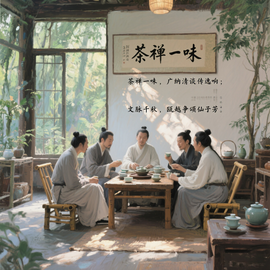 温州雅筑,雨林茶坊。岂独货殖之场,实乃文脉津梁。方家麇集,品茗论道意徜徉;古鉴澄明,照影茶魂岁月长。香沁髓骨,夏公金舌荐特供;艺冠东南,研究会首授荣光。茶禅一味,广纳清谈传逸响;文脉千秋,瓯越争颂仙子芳。