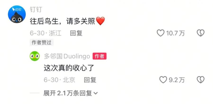 但“酒香也怕巷子深”,本土化更快的方法,则是利用流量杠杆实现破圈曝光,同时精准抓取年轻群体中的潜在用户。这或许就是多邻国在社交媒体深耕多儿人设的深层用意。如此精通国内互联网各种热梗的多儿,你绝对不会想到,这其实是一只外国鸟。
