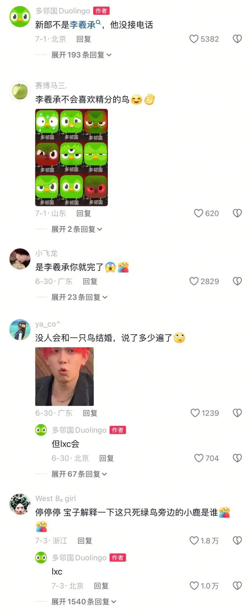还有了解多儿的粉丝质问:“是不是李羲承!”(没错,这只鸟还有自己喜欢的韩国爱豆),多儿也不忘自己的梦女人设,在新郎人选正式揭秘前不断“口嗨”蹭李羲承热度。