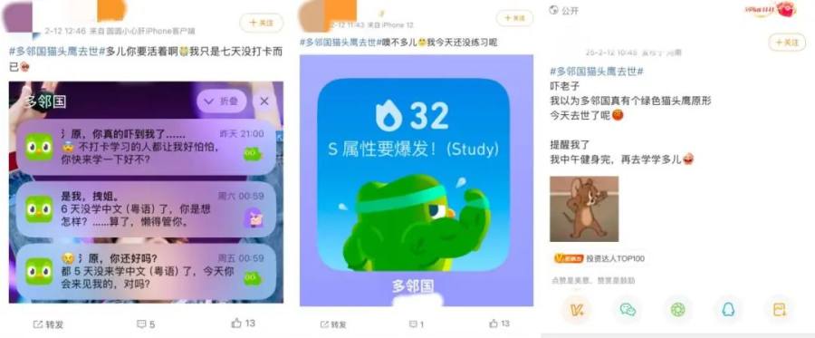 随着各大品牌的下场玩梗和多邻国在多儿“死后”还不遗余力地搞抽象,网友渐渐从这团死亡疑云里走了出来,一些网友从官方的口吻里品出了猫腻:不会要靠连续打卡帮多儿复活吧!