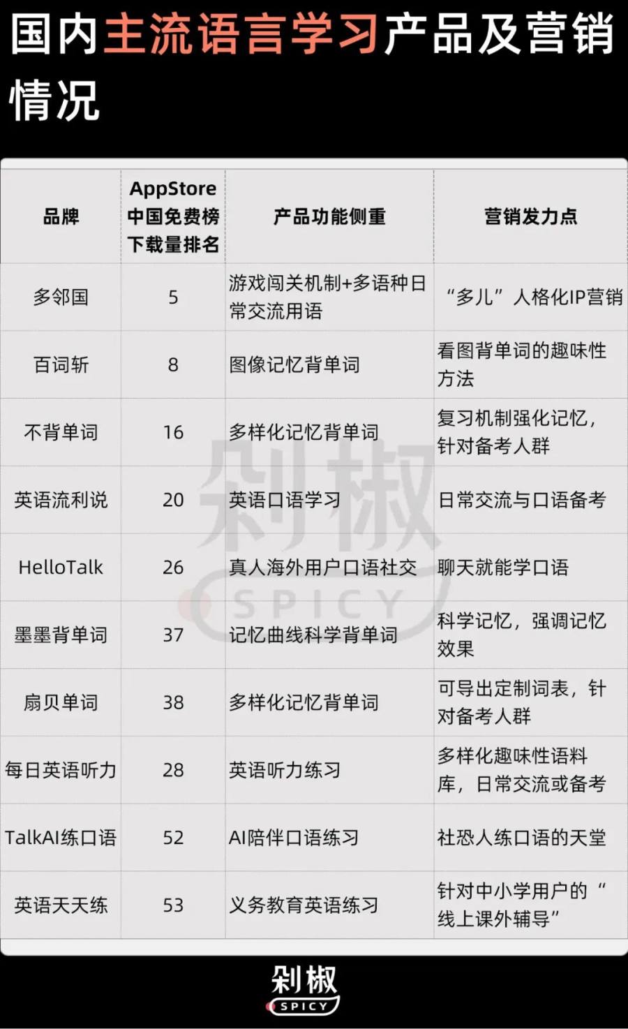 作为一款语言学习APP,相比于市场上的其他竞品,多邻国核心的市场竞争力在于它在小语种学习上的全面性和日常实用性。比起更多语言学习APP专注备考赛道,多邻国的语言学习更适用于日常交流,这一核心卖点也使得多邻国在全球市场上的普及度颇高,2017年,多邻国已经是全球下载量最高的教育类APP。