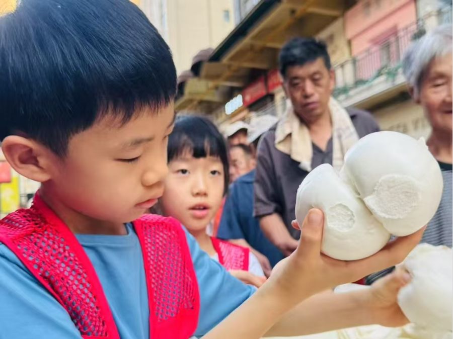 图片为小孩子为环卫工人分发馒头 段婉莹 供图
