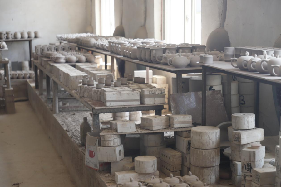 (队员体验郏瓷拉坯工艺,观察陶瓷制作)