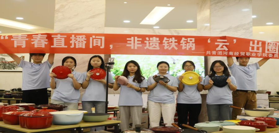 (“郏韵兴农”实践团卖铁锅直播合影)