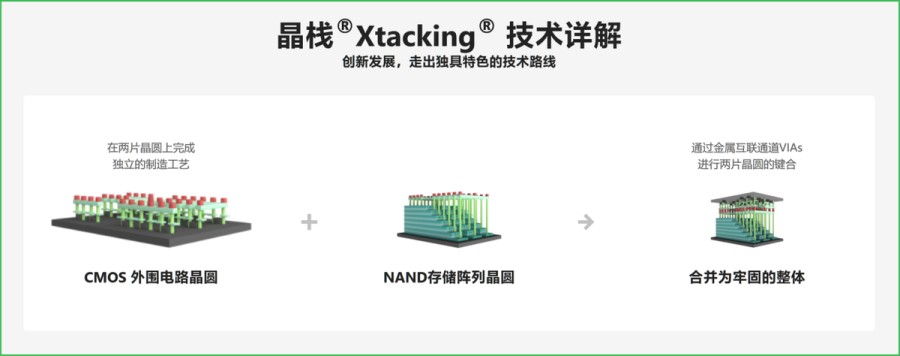 在NAND领域,长江存储的进展甚至更为迅猛。其独创的Xtacking(晶栈)混合键合工艺,被认为是全球首个成功商用的3DNAND技术,能够将产品开发时间缩短至少三个月,生产周期缩短20%。