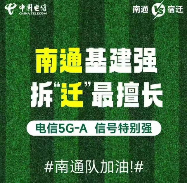 观众网络升级的迫切需求被快速满足,也离不开江苏各个运营商的积极行动。江苏电信创新推出的5G-A应援套餐,球迷通过扫码即可免费体验5G-A高速网络服务。接入5G-A后,用户手机屏幕左上角显示的“电信:一哥争霸”标识。宿迁移动推出的“UELogo助威苏超”服务,让进入奥体中心的球迷手机状态栏自动切换为“中国移动 超燃苏超”专属标识。这些微小而细致的设计进一步提升了球迷参与感。运营商通过赛事直播、粉丝互动等活动快速触达目标用户,将观赛热情转化为5G-A的消费动力。