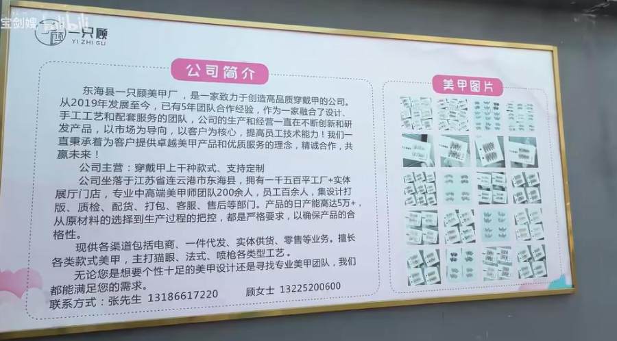 2019年3月,顾汉玲和丈夫听到拼多多的“风声”,决定共同在连云港东海创立一间做穿戴甲的公司,试着踩踩风口。