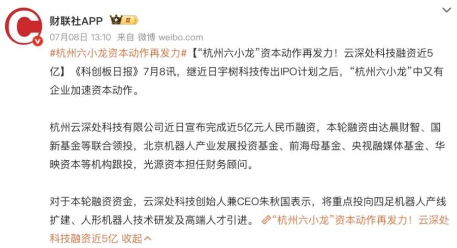 作为“杭州六小龙”之一,云深处科技或许是其中较为低调的一位,但其融资节奏却越来越快。