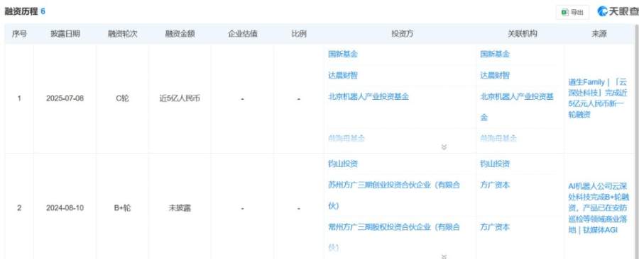 从2018年获得天使轮投资开始,至2022年的B轮、2024年8月的B+轮,再到今年7月最新完成的近5亿元C轮融资,云深处的融资进度不断加快。