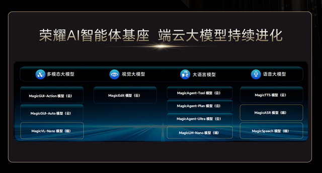 荣耀YOYO背后,就有一个端云协同的大模型矩阵,覆盖视觉、语言、语音等多模态领域。其中,MagicGUI 模型操作准确率达 91.5%,MagicVL-Nano 端侧模型兼顾隐私与低功耗图像理解,此外,三款云端大语言模型精准把握用户意图,视觉大模型在修图、生图场景表现突出。