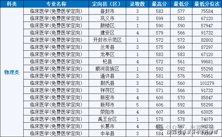 临床医学(免费医学定向)共录取50人。物理类录取50人,最高分607分,最低分560分。
