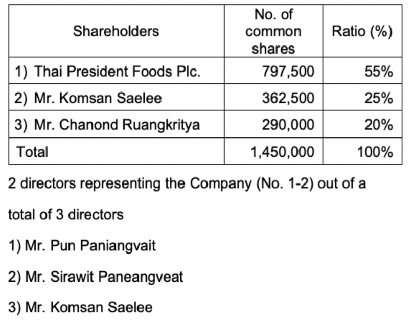 *泰国总统食品有限公司公告