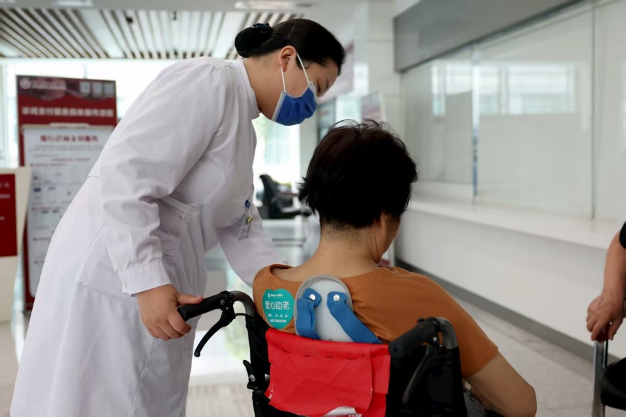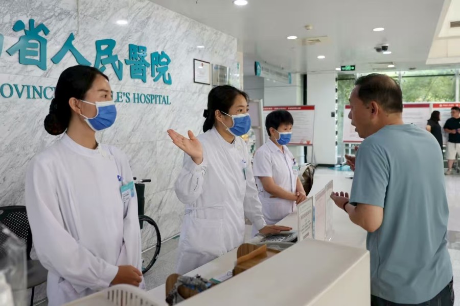 医院将防暑降温融入服务细节。在门诊大厅、挂号缴费窗口、候诊区等人流密集区域,增设13个前沿服务点位加强引导分流;高峰时段开放全部服务窗口,全员上岗缓解压力。医务人员创新服务模式,特别为老年、体弱及行动不便患者设计“爱心助老贴”,畅通优先就诊渠道,提供贴心引导和关怀。急救中心特别开通“中暑绿色通道”,确保相关急危重症患者救治全程无缝衔接、优先处置。