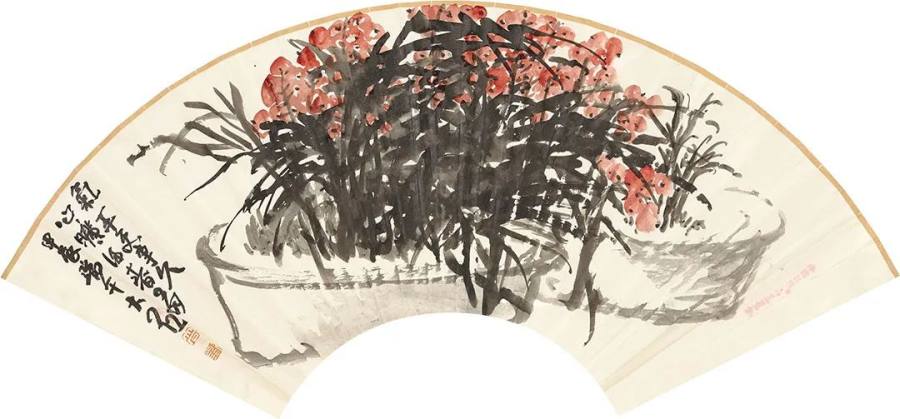 题识:心闲能劫老,花好更觉红。甲辰端午,大石。