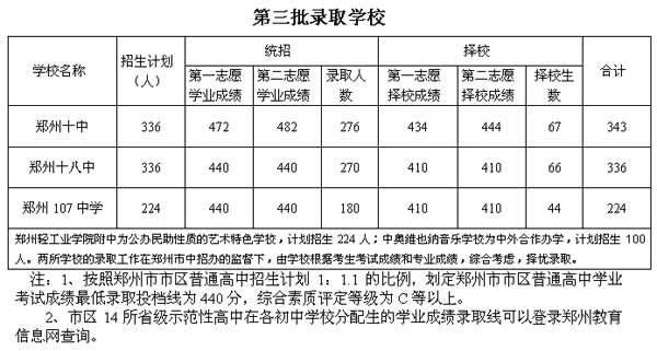 答:现在郑州市中考分成提前批,第一批,第二批,第三批,第一批是省示范高中(不全是),第二批是市示范高中,第三批是民办高中和国际部。