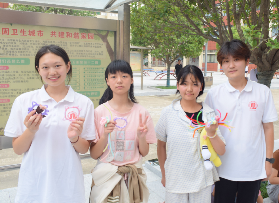 扭扭棒手工制作现场,起初志愿者们还在担心自己的指导方式不够恰当,可当看到孩子们专注的眼神和灵巧的双手时,他们的心渐渐安定下来。有个小女生拿着自己做好的扭扭棒花朵,小心翼翼地递给志愿者,志愿者惊喜地接过,用手势表达着赞美,小女生露出了腼腆又开心的笑容。这一刻,志愿者感受到了被信任的温暖,而孩子也在志愿者的肯定中收获了自信。