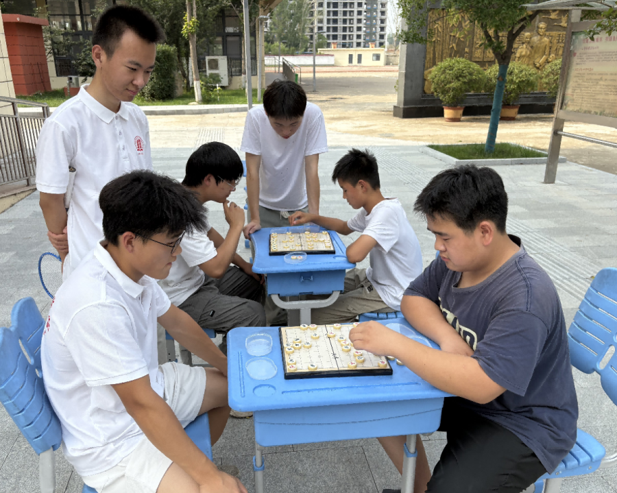 象棋桌前,志愿者本想让着学生们,可没想到有个男生棋艺精湛,几步下来就让志愿者陷入了困境。志愿者认真思考应对之策,男生则用手势催促着,脸上带着一丝小得意。这场棋艺切磋,没有输赢之分,志愿者在孩子身上看到了不服输的韧劲,孩子也从志愿者的认真态度里感受到了尊重。
