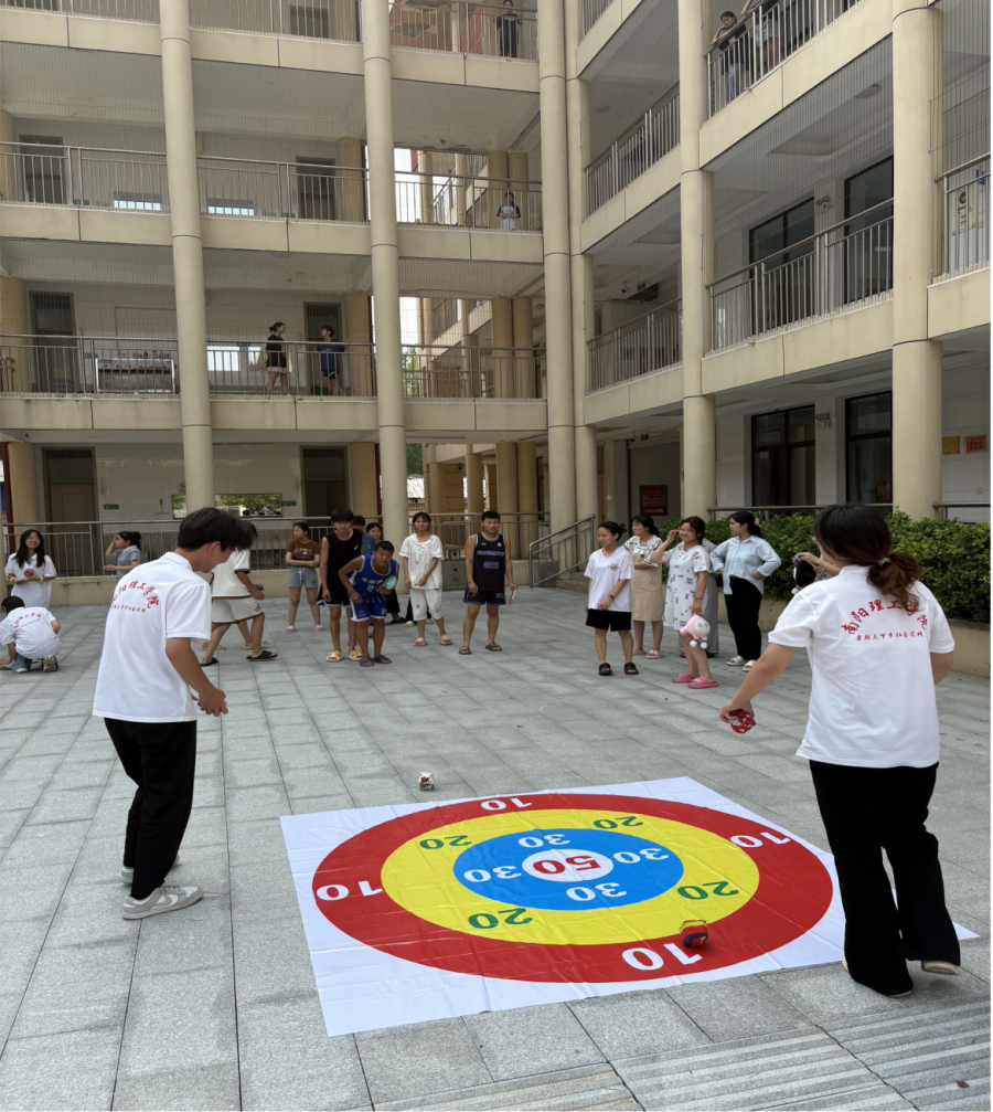 沙包投掷活动中,志愿者示范着投掷技巧,孩子们模仿着动作,虽然起初扔得不远,但志愿者每次都跑过去捡回来,鼓励他们再试一次。当一个男孩终于将沙包投到了目标区域,他兴奋地跳起来,和志愿者击掌。志愿者被孩子的快乐所感染,而孩子也在一次次尝试中体会到了坚持的意义。