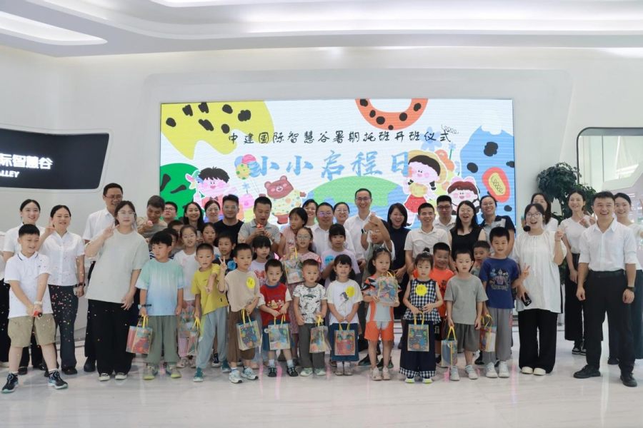 盛夏七月,暑气愈浓,长沙中小学已经开启了为期两个月的暑假。中建国际智慧谷的党群服务中心,传来了一片欢声笑语。原来,园区员工、孩子、教师团队及园区运营服务中心员工欢聚一堂,举办了一场名为“小小启程日”暑假托管的开班仪式。20余家企业近50个孩子的暑期托管生活,在中建国际智慧谷正式拉开序幕。