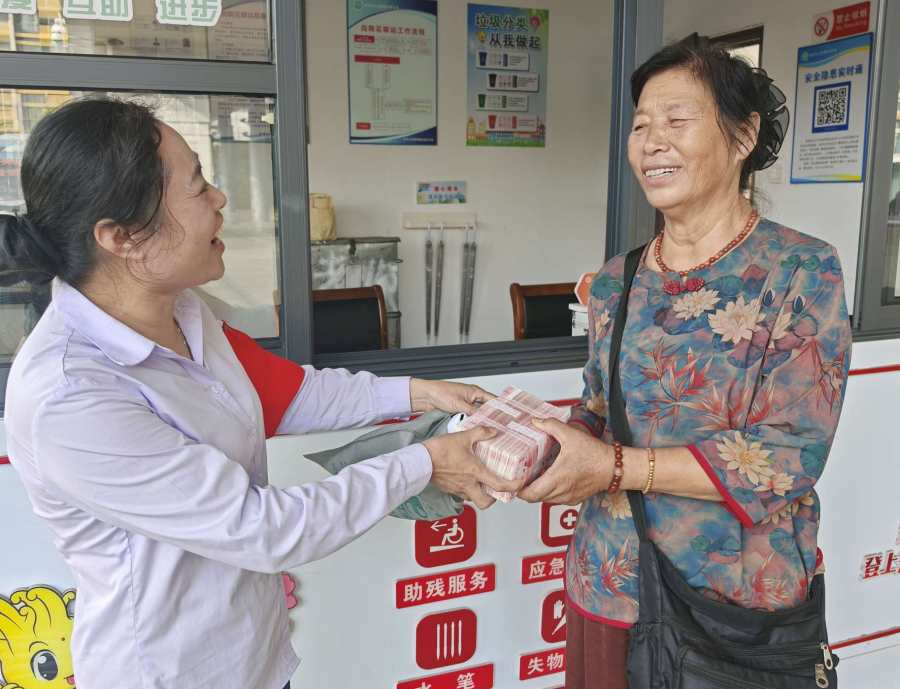 王小兵等人随即联系邵女士,告知现金已找到,并约定领取地点。16时30分许,邵女士赶到528路终点站铁路金华站“向阳花驿站”,经核对身份后,领回了丢失的10万元现金。面对失而复得的钱款,邵女士激动不已,连连向公交的工作人员表达感谢。