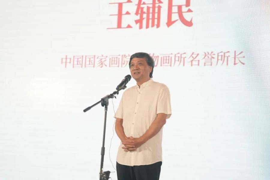 徐青峰院长在致辞中表示:“贾广健先生与王辅民先生,一位以工笔写意之精微见精神,一位以民间表现之宏阔显气象。这种‘和而不同’的艺术对话,正是当下中国美术‘守正创新’的生动注脚。两位艺术家的联袂展出,是一场关于‘传统与现代’的学术思辨:贾广健先生以‘工写之间’回应了‘如何以传统笔墨介入当代语境’;王辅民先生以‘民间表现主义’回答了‘如何以本土经验重构现代性叙事’。他们的作品共同证明:中国画的创新,在于对自身文化基因的创造性转化——或如琢如磨,在工写之间见天地;或如焰如炬,在民间沃野燃新火。这种转化,需要艺术家的个体智慧,更需要文联、美协、学院、画院、美术馆等机构的学术接力。”