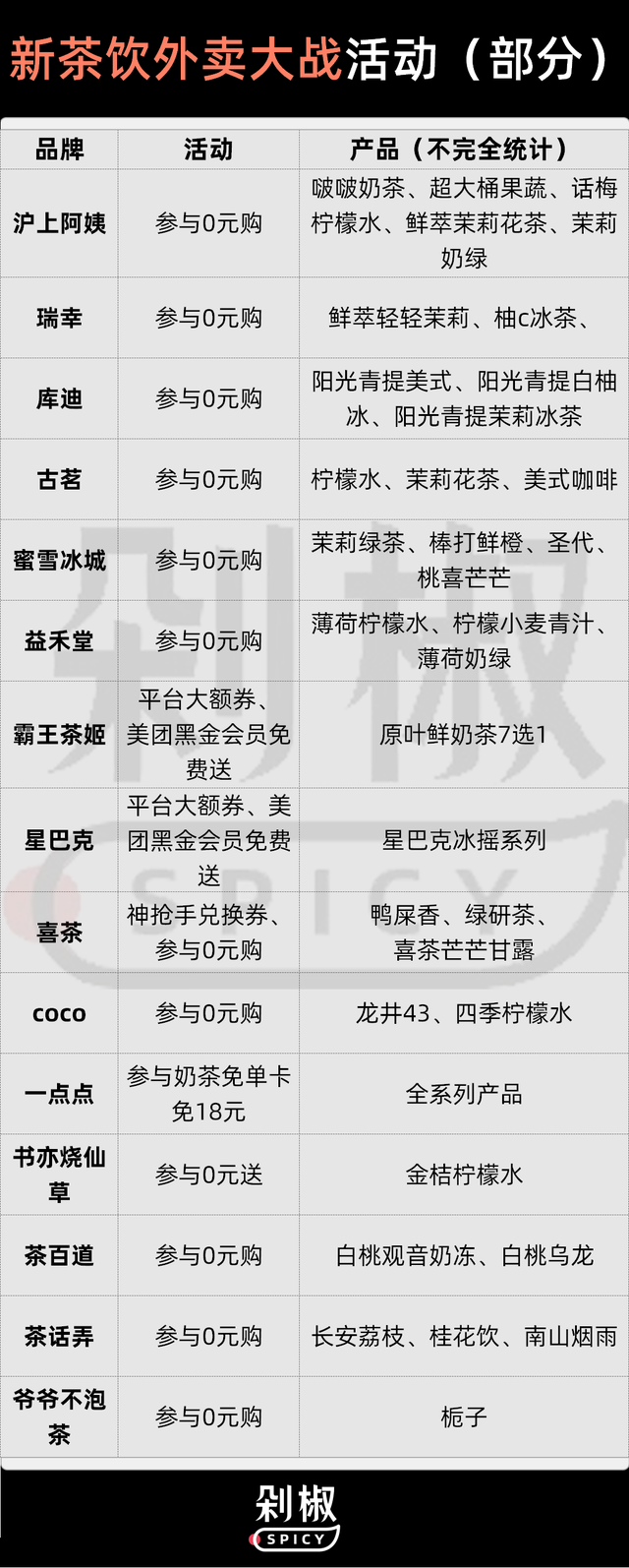 与之相比,大部分品牌只拿出了1—3款产品参加补贴,多聚焦柠檬水、基础茶等低价单品,最大限度降低品牌在补贴中的亏损压力。
