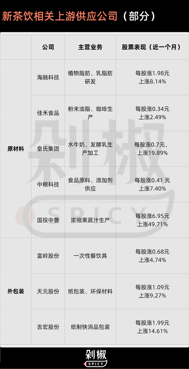 新茶饮的订单爆发直接引爆了供应链狂欢,从奶油、糖浆到包装材料的供应商,都在这场下游的“价格厮杀”中,享受到了订单暴增带来的红利。