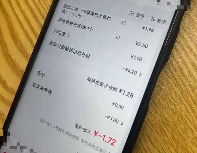 极端的案例也在新茶饮行业出现,一位加盟商的后台赫然出现实付-2、-3元的订单,这意味着商家不仅一分钱没赚,还要为这单生意倒贴原料和人工成本。
