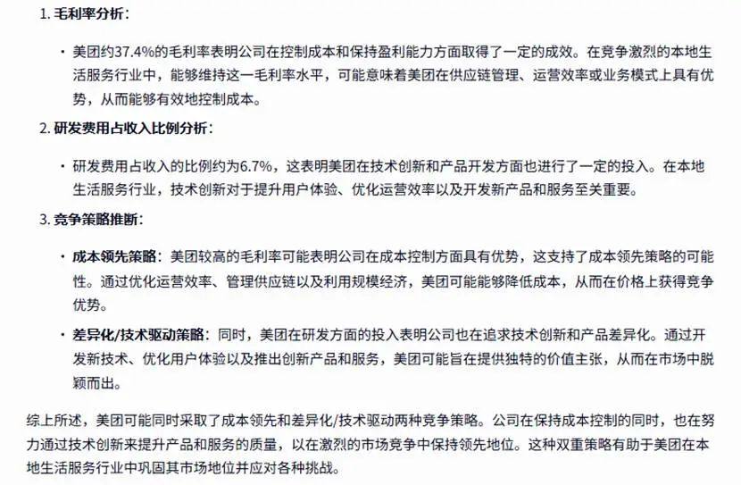 Kimi-K1.5则从宏观角度出发,根据美团的主营业务进行分析,并未注重于财报中隐藏的信息。