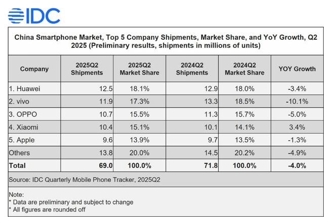 凭借这些产品,OPPO在智能手机“黑铁时代”,稳住了市场影响力。IDC数据显示,2025年Q2,在中国智能手机市场,OPPO出货量为1070万部,占据15.5%的市场份额,位列第三。