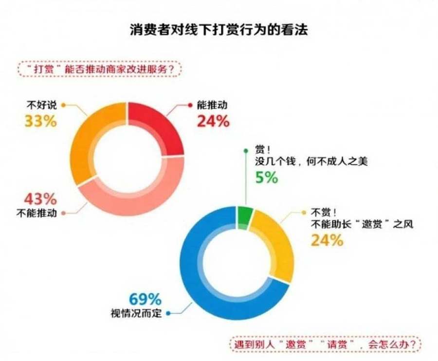 当年,《人民日报》一次关于“打赏”的社会调查显示,43%的受访者表示,对于线下的餐饮、酒店、出行、快递等服务,打赏并不能真正推动商家改进服务;相反,有时候打赏反而会干扰正常服务,索赏、请赏更是会造成困扰。