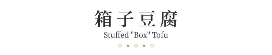 箱子豆腐外形方方正正,造型别致有趣,寓意“开箱取宝”,外皮柔韧,馅料内容丰富,鲜香四溢。