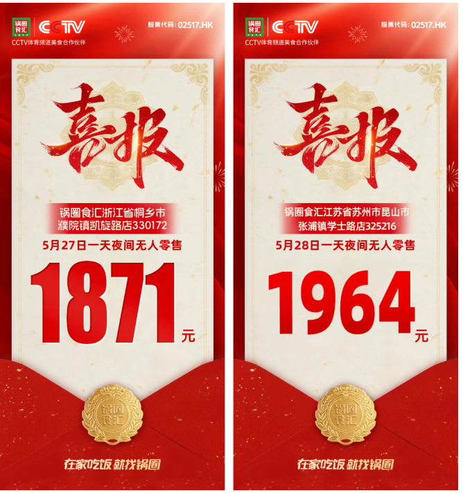 据悉,于去年5月下旬,锅圈开始通过已搭建的多层级抖音账号矩阵陆续推出毛肚火锅套餐,2024年抖音总曝光量突破62.1亿次,同时24h无人零售模式创新逐步落地。